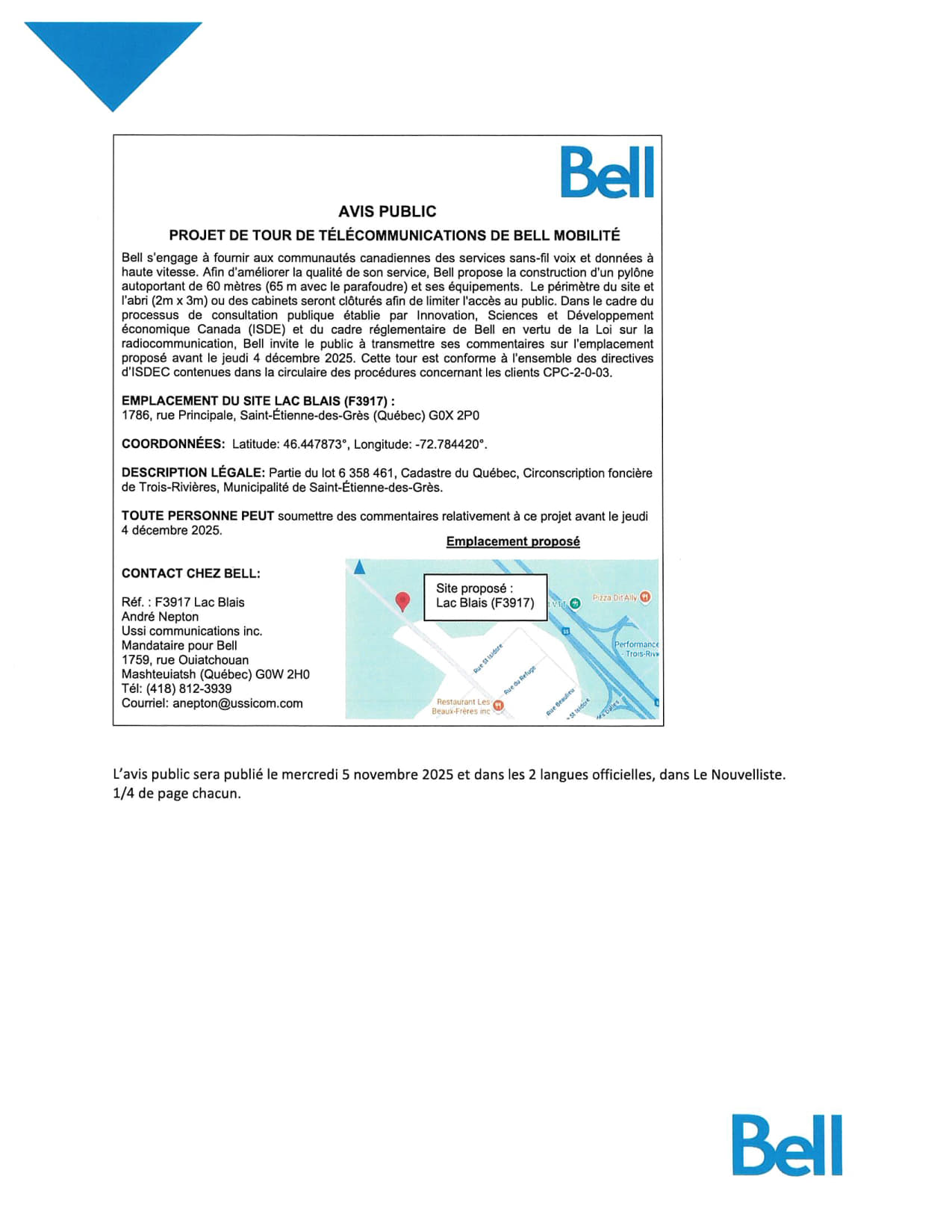 Complément à la lettre à la municipalité de St-Étienne-des-Grès et aux résidents – F3917 Lac Blais